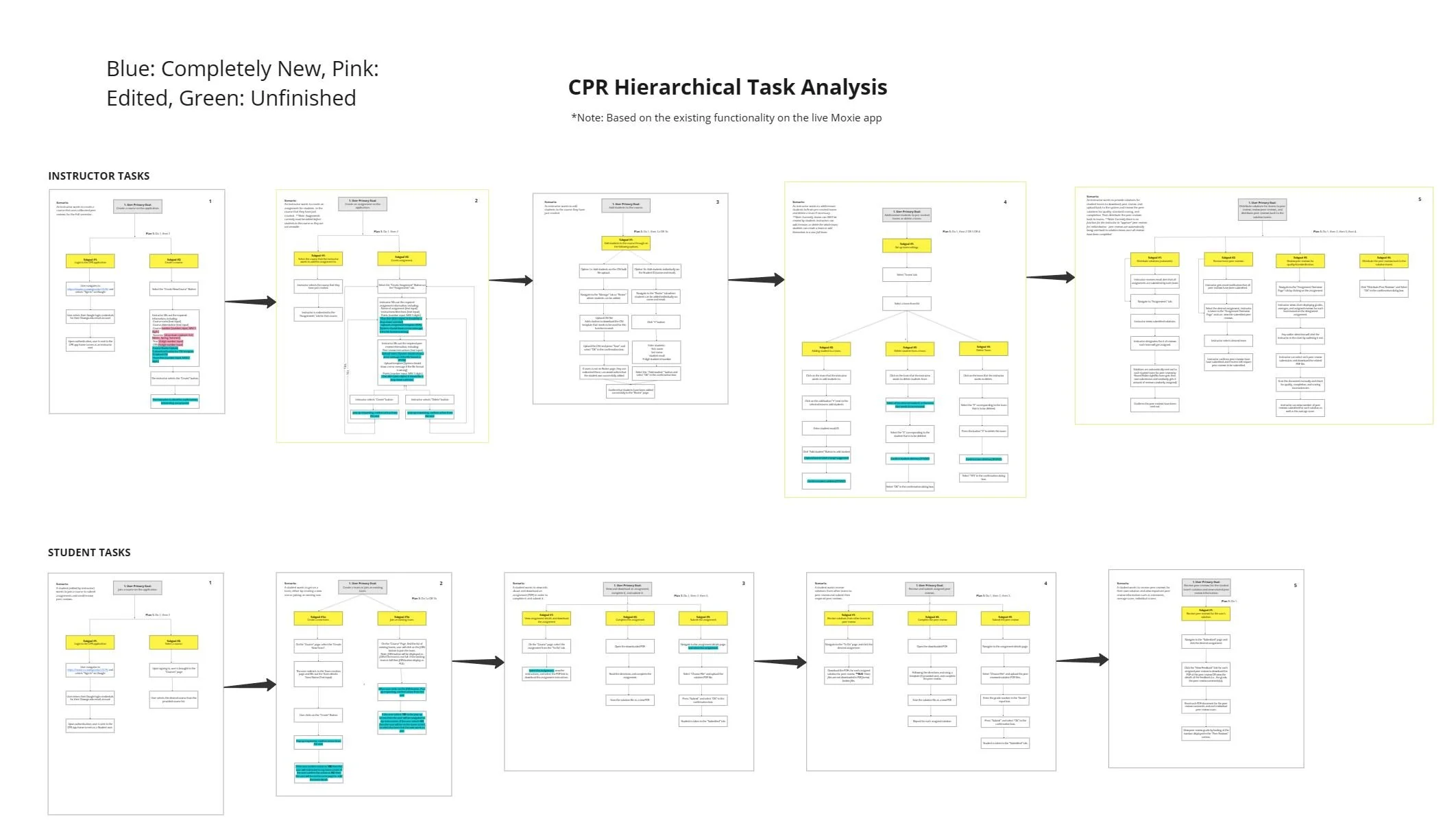 A hierarchical task analysis was created for both the student role and the instructor role in order to map out the tasks and smaller subtasks required to complete the desired goal.