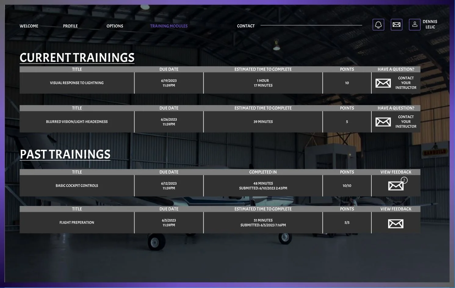The project originally focused on VR/AR within pilot training as a means of simulating visual responses to stress, such as blurred vision or tunnel vision. Ultimately, the design challenge was expanded to incorporate an entire platform focused on every aspect of pilot training in which pilot instructors may distribute and moderate training for students