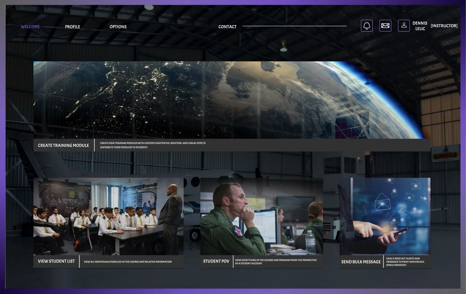 The home screen for users that are students looks similar to the screen that an instructor would be presented with, but they provide users with different options. Students are able to create their own custom training or flight path through the world map feature, view current and previous trainings assigned by the instructor through the training modules feature, view their previous flights through the flight history feature, and perform a random training module through the random training feature.